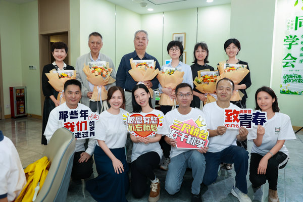 在南校园的松涛园,校友们与温老师、管老师、王老师等6位敬爱的老师欢聚一堂。在这里,师生之间的亲切交流如同往日重现,老师们细心聆听校友们的工作与生活近况,脸上洋溢着欣慰的笑容;校友们则为退休恩师们的精神矍铄、在职老师的教研成果丰硕而感到自豪与欣喜。