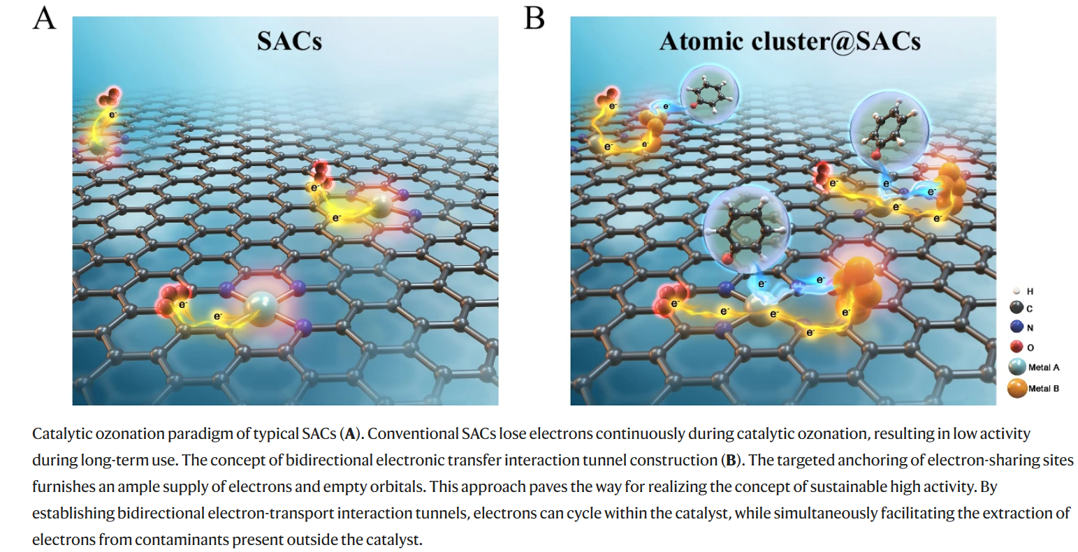 祝贺宋子龙和徐家广的工作在Nature Communications发表!研究开发了MnN3–Fe1@FeN4纳米催化剂,从原子尺度揭示了纳米催化剂中双向电子传输互作隧道的调控机制及其在臭氧催化过程中提升活性与稳定性的作用机理,为可持续水处理材料设计提供了思路。 Tailoring bidirectional electronic transfer interaction tunnels triggers sustainable and high activity of ozone catalysis for water purification