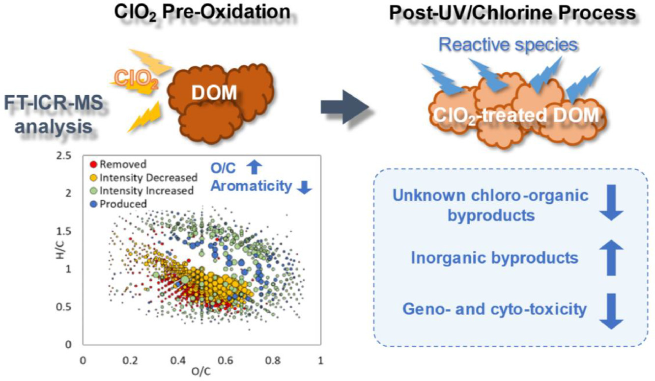 - Li, T., Shang, C., Xiang, Y.*, Yin, R., Pan, Y., Fan, M. and Yang, X.* (2022) ClO2 pre-oxidation changes dissolved organic matter at the molecular level and reduces chloro-organic byproducts and toxicity of water treated by the UV/chlorine process. Water Research, 118341. DOI: //doi.org/10.1016/j.watres.2022.118341